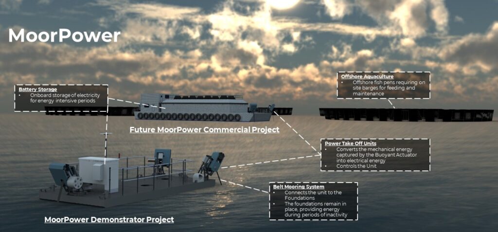 MoorPower’s advantages extend beyond fish farming, as it can be deployed for any type of moored vessel. The technology’s key benefits include increased autonomy, 24/7 energy supply in energetic wave climates, carbon emission reduction, elimination or reduction of refuelling requirements, and integration with other offshore renewable energy systems, including hydrogen and batteries.